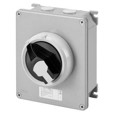 GEWISS 70RT HP ISOLATOR IN METAL ENCL IP66 - BLACK KNOB 40A (AC23A) 3P+N 140x165x64mm