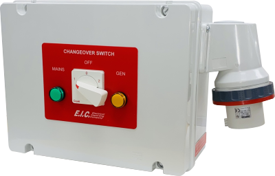 GAVE CHANGEOVER SWITCH 3PH 63A IP55 ENCL WITH 63A 3P+N+E INLET & POWER INDICATORS 316(H)x531(W)x213(D)mm