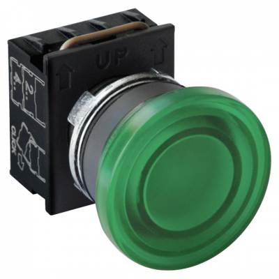 GHISALBA 22mm IP66 ILLUM MUSHROOM BUTTON GREEN MOMENTARY 40mm DIA